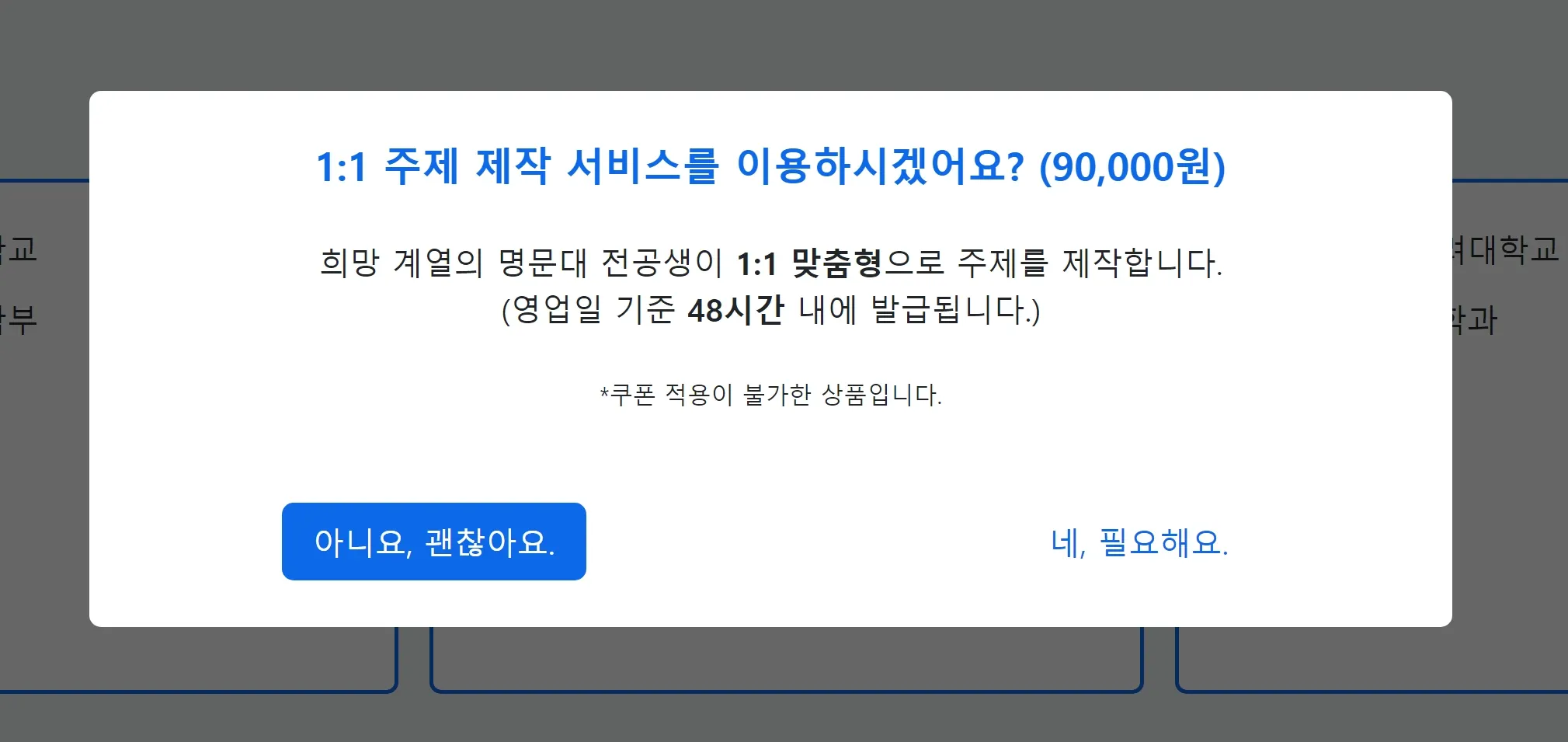희망 계열의 명문대 전공생이 1:1 맞춤형으로 주제를 제작하며,