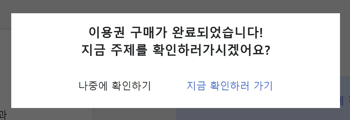 결제가 완료되면 구매 완료 안내 팝업창이 뜹니다.