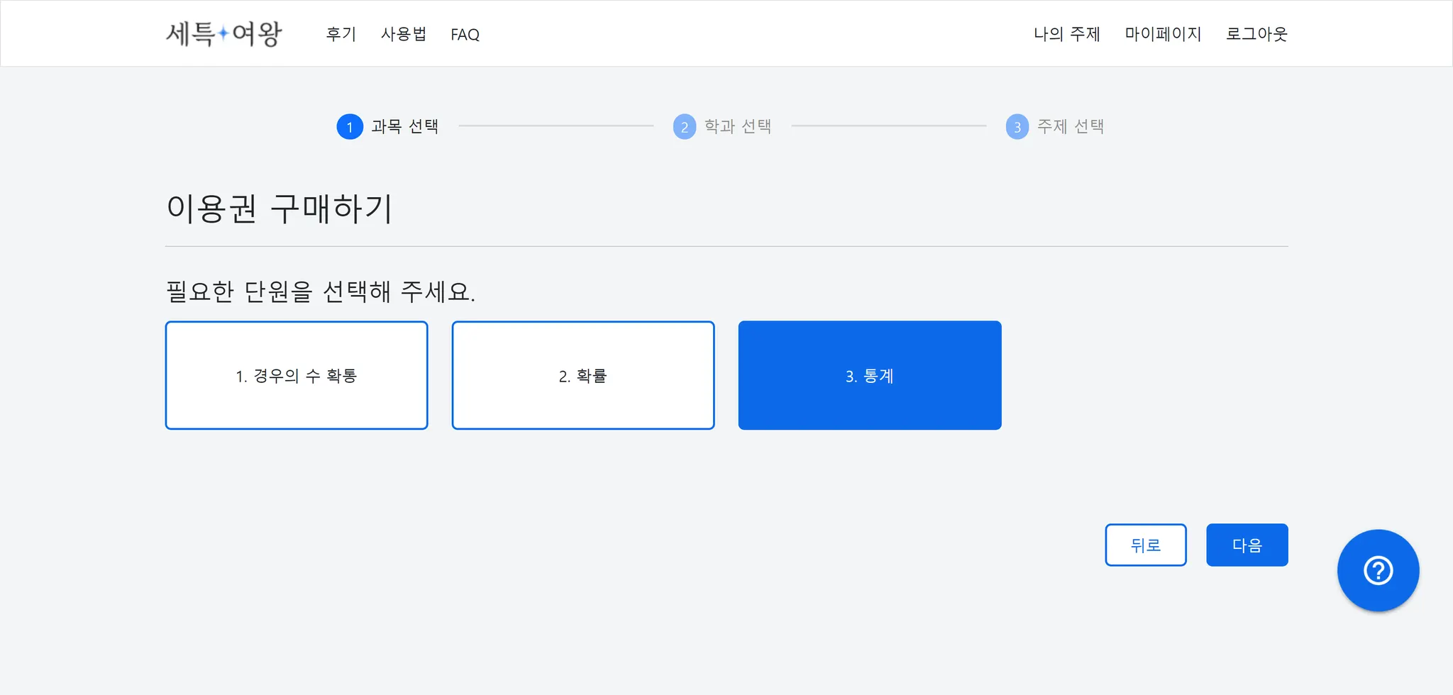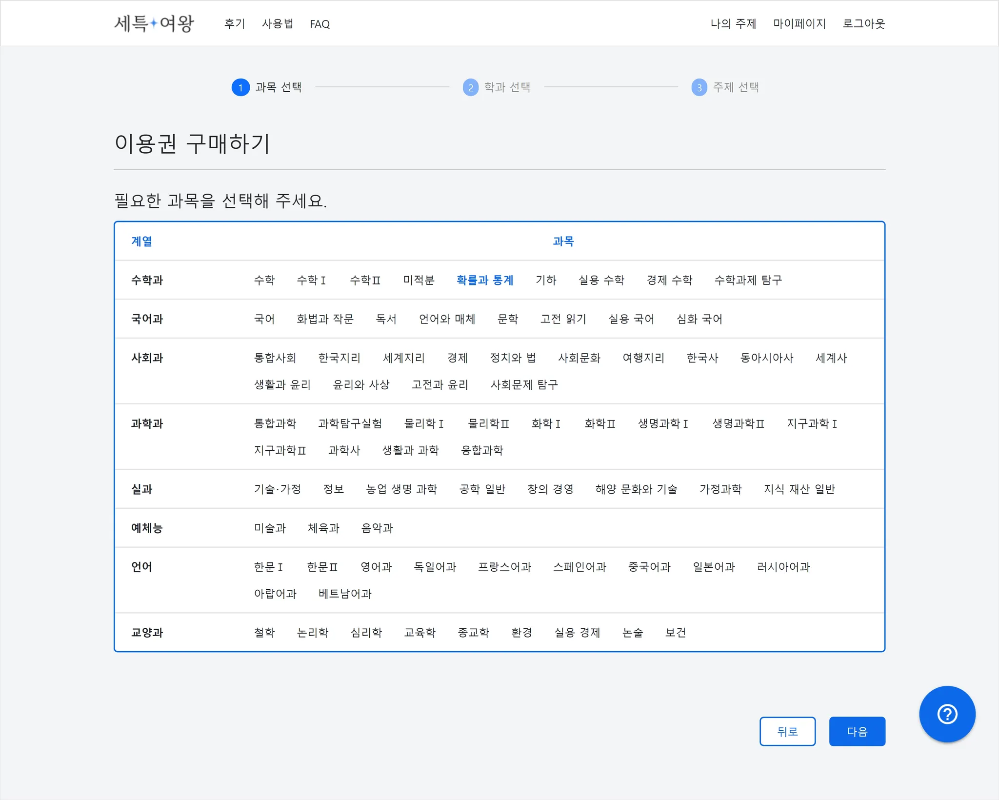 필요한 과목을 선택한 후, 다음 버튼을 클릭합니다.