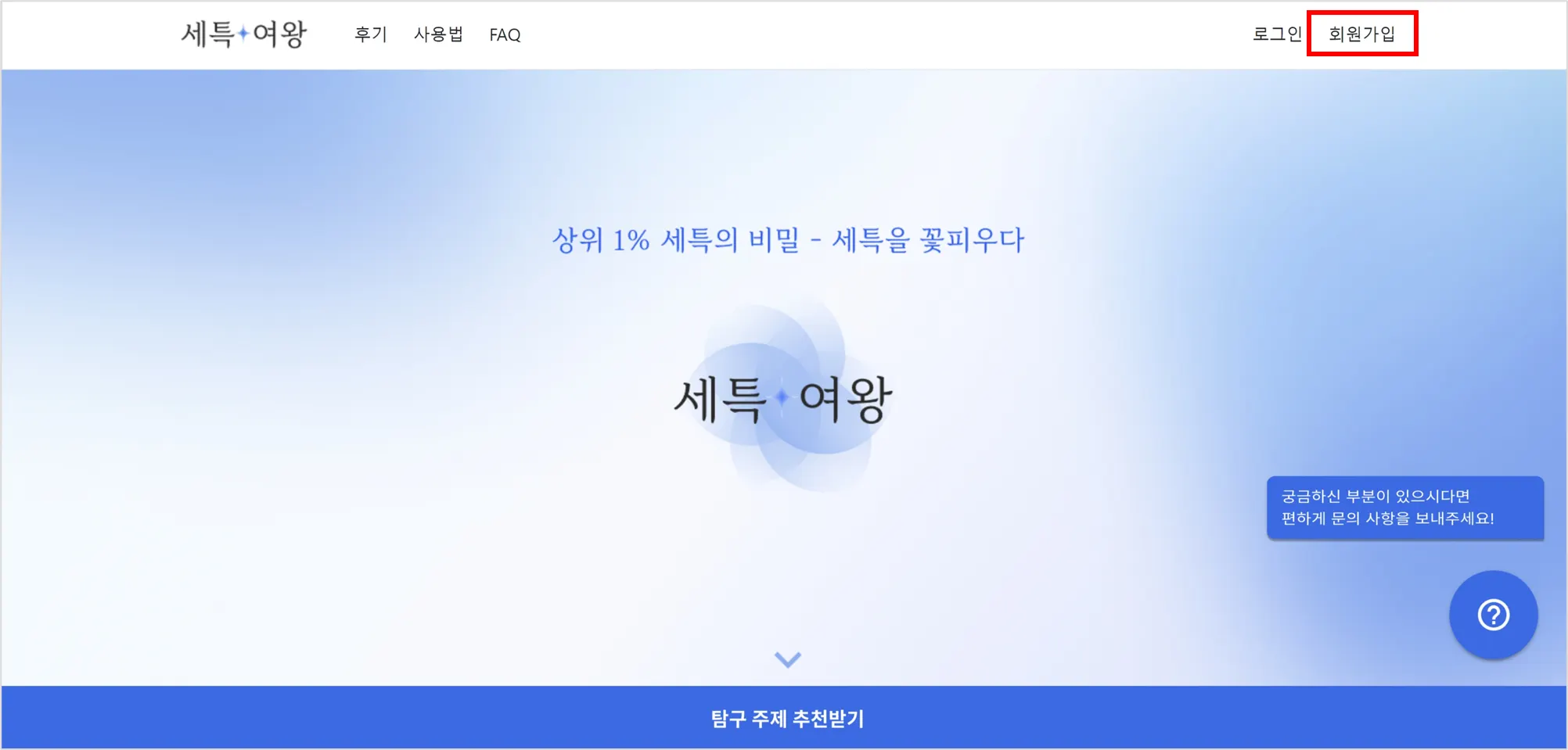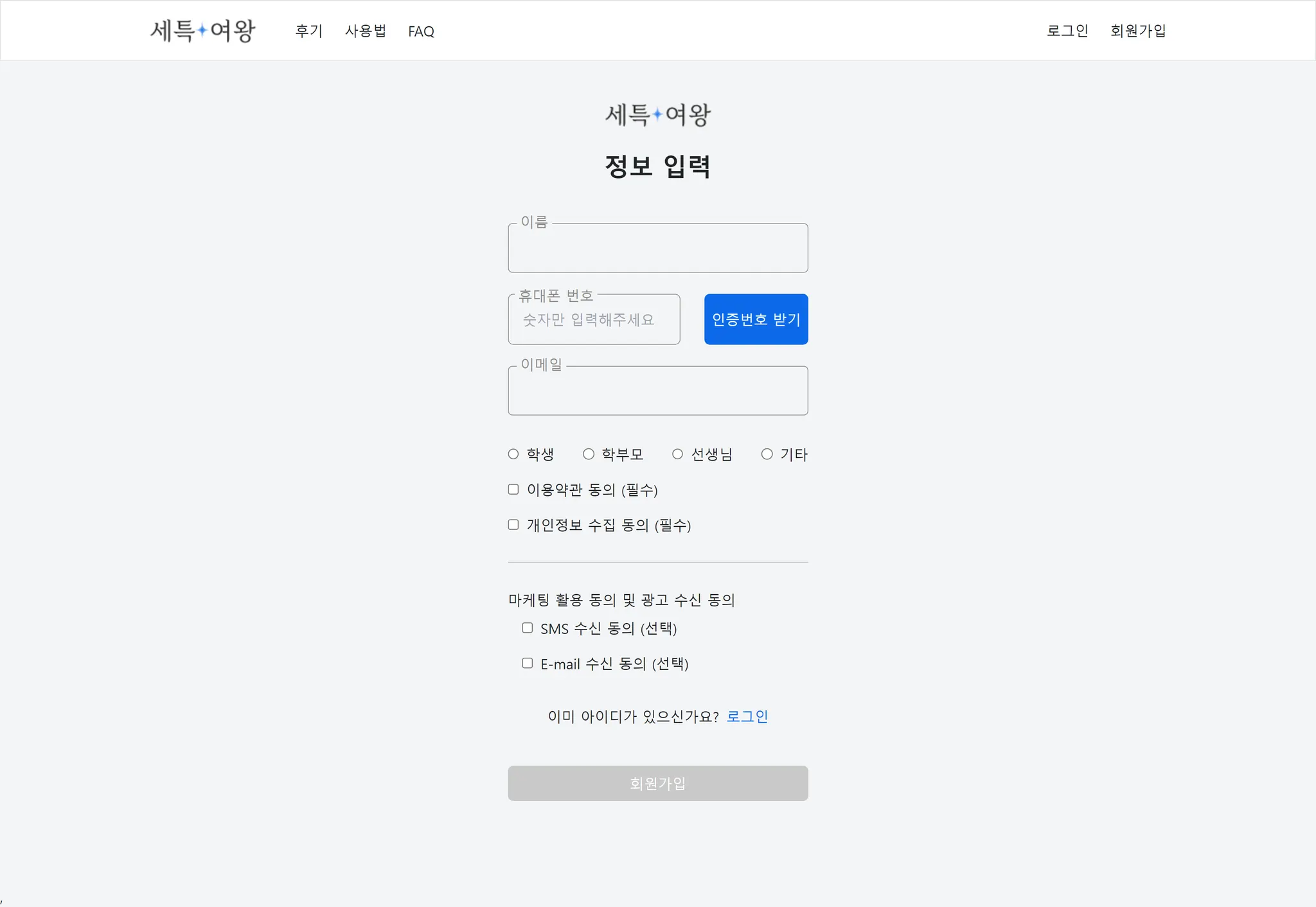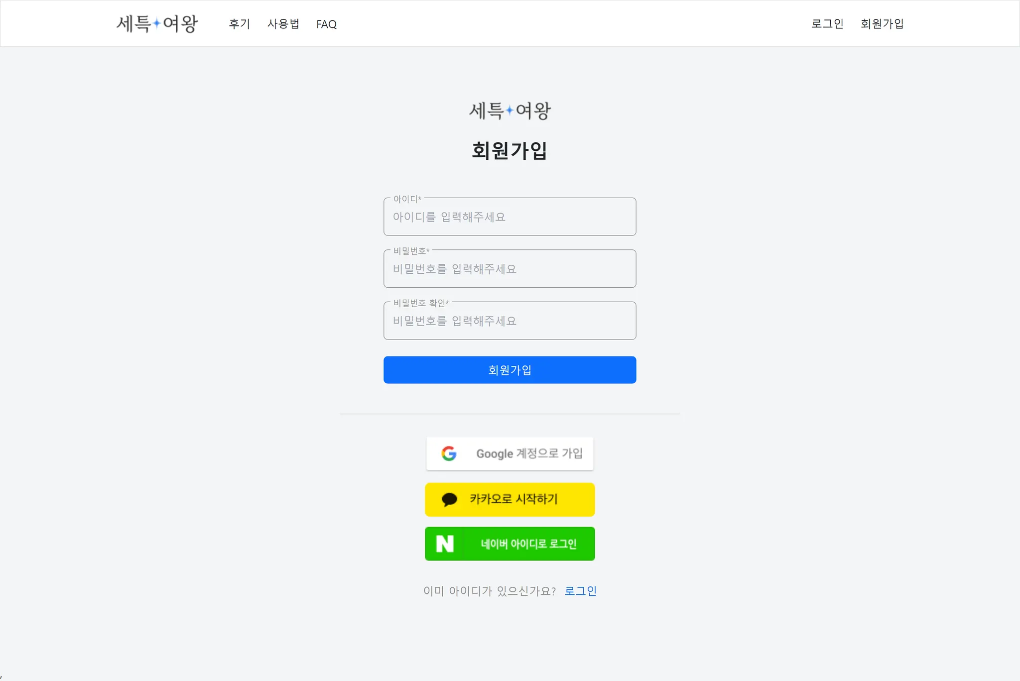 우측 상단의 회원가입 버튼을 클릭하여 회원가입 페이지로 이동합니다.