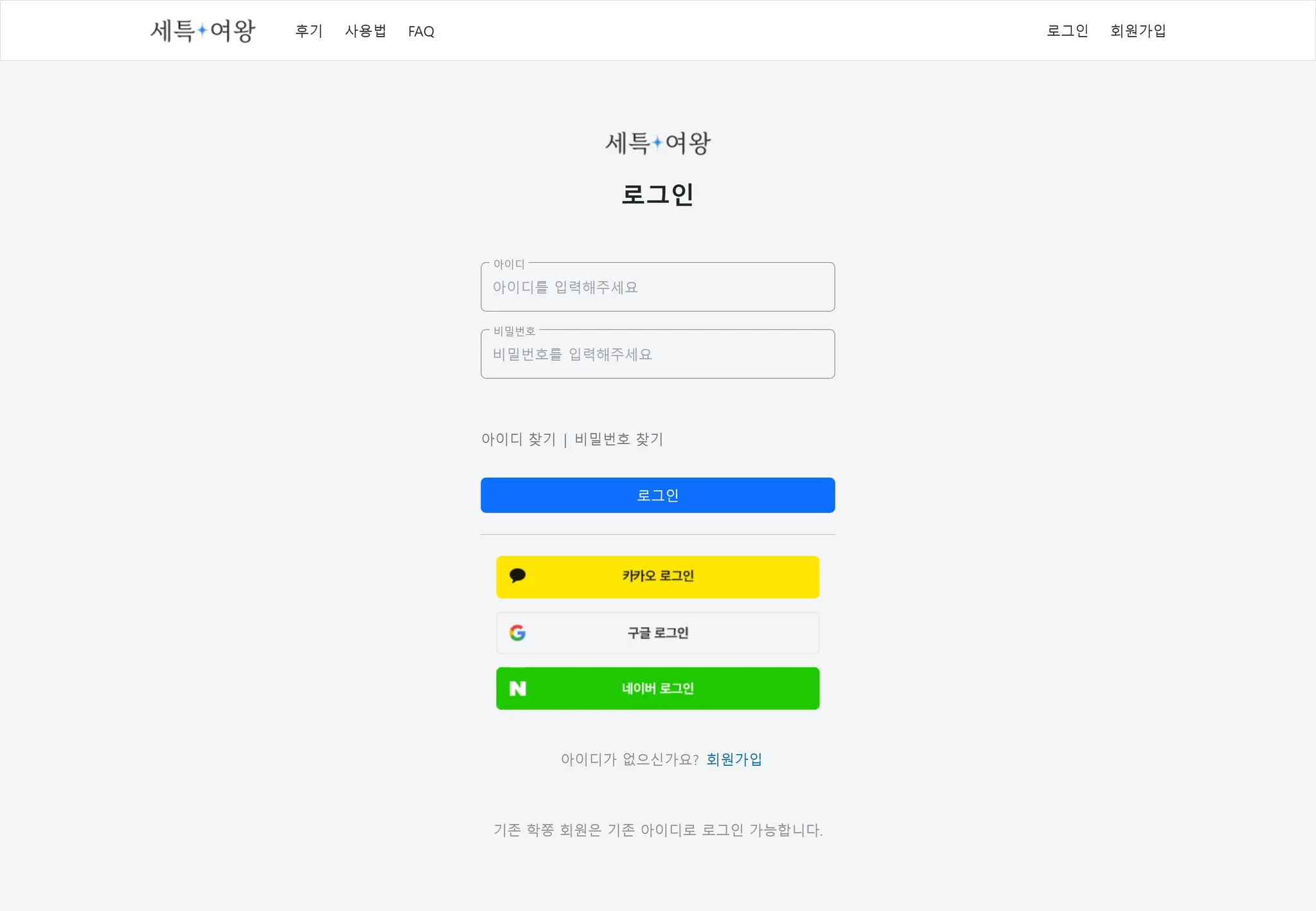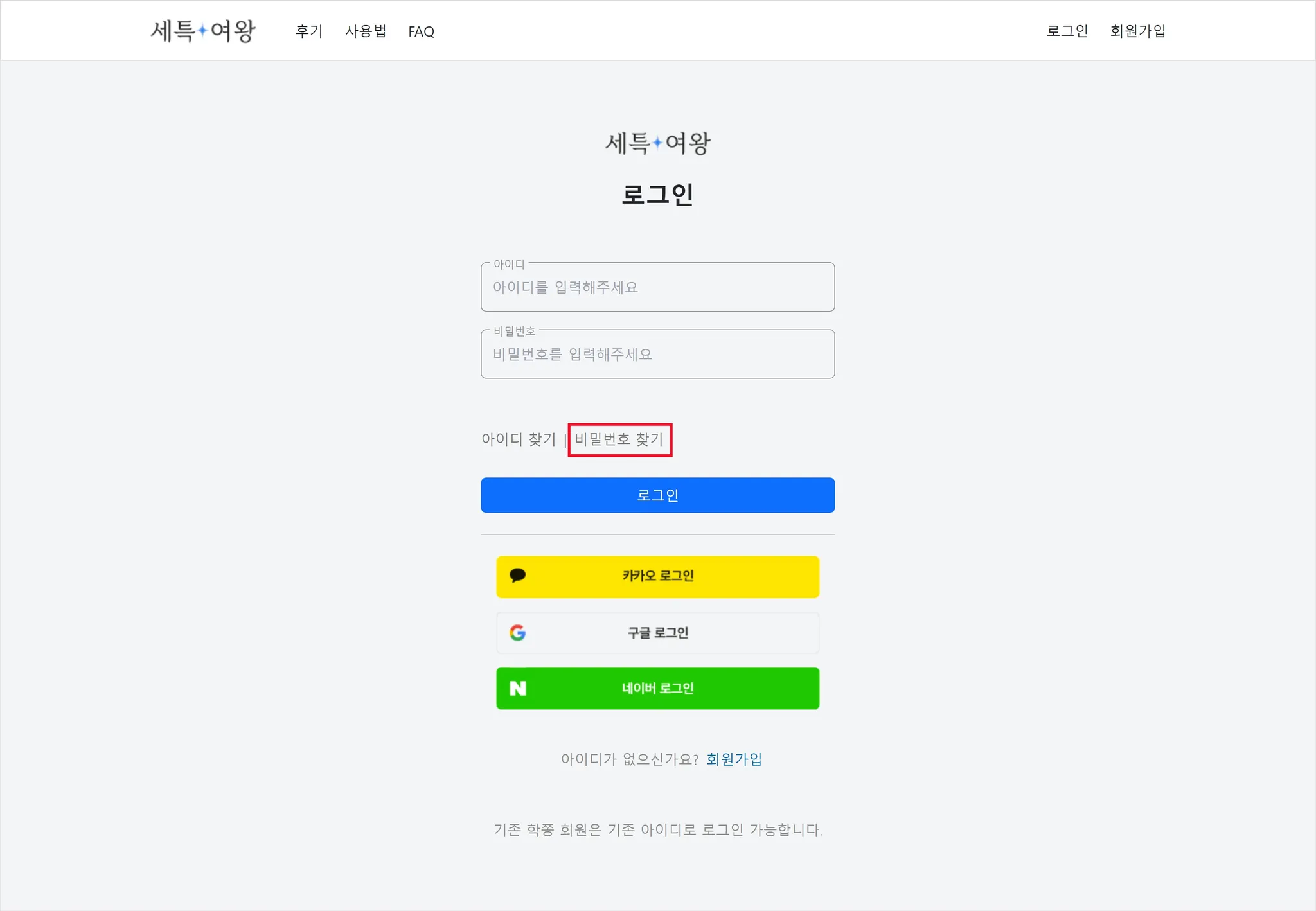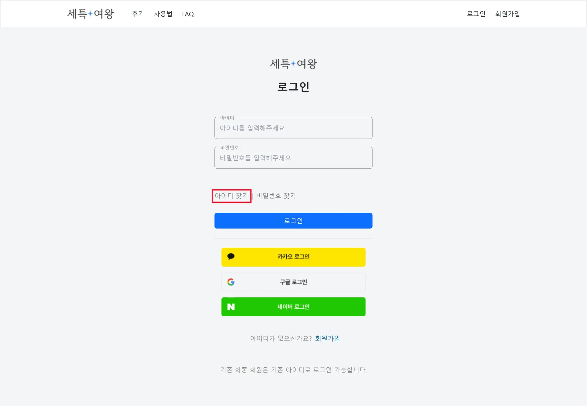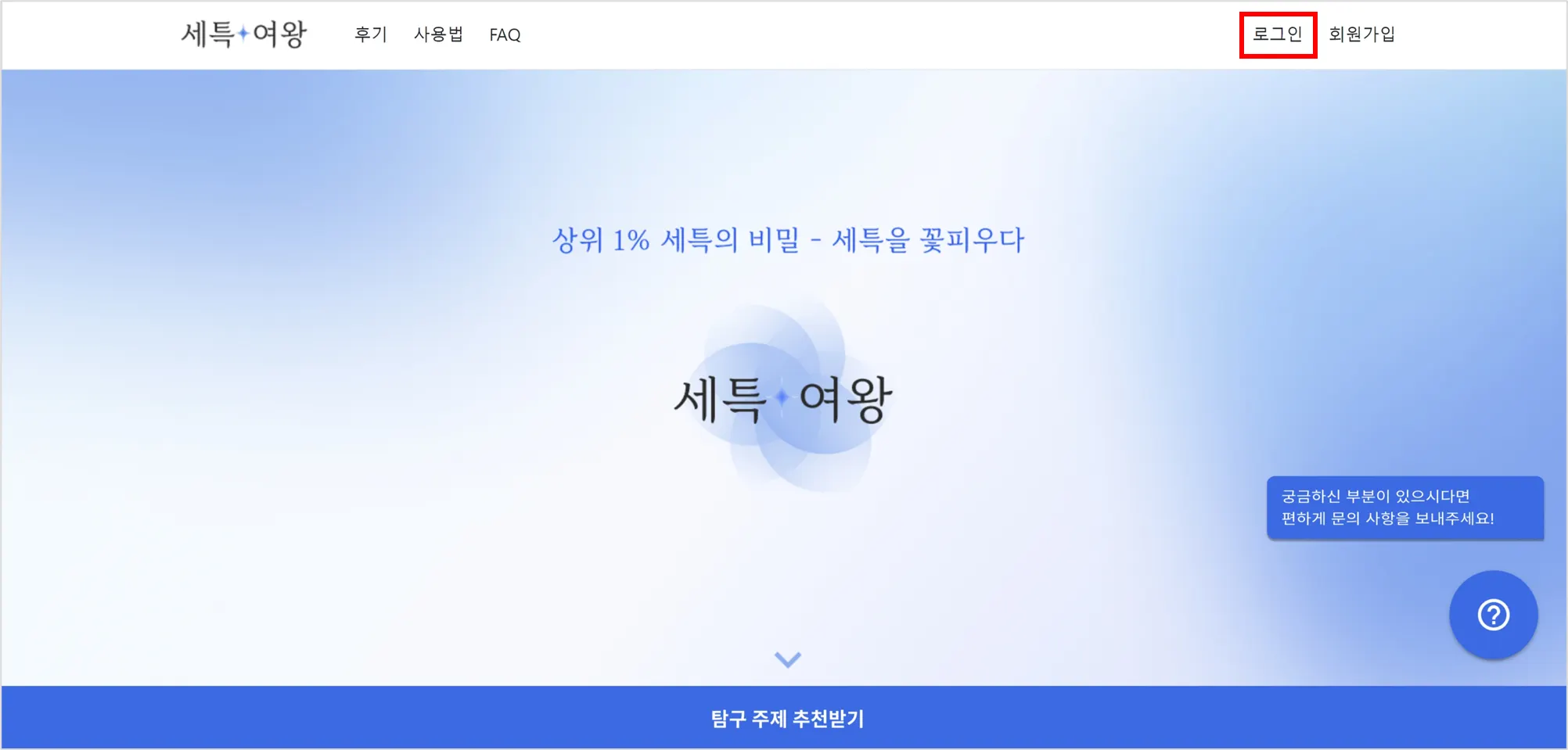 우측 상단의 로그인 버튼을 클릭하여 로그인 페이지로 이동합니다.