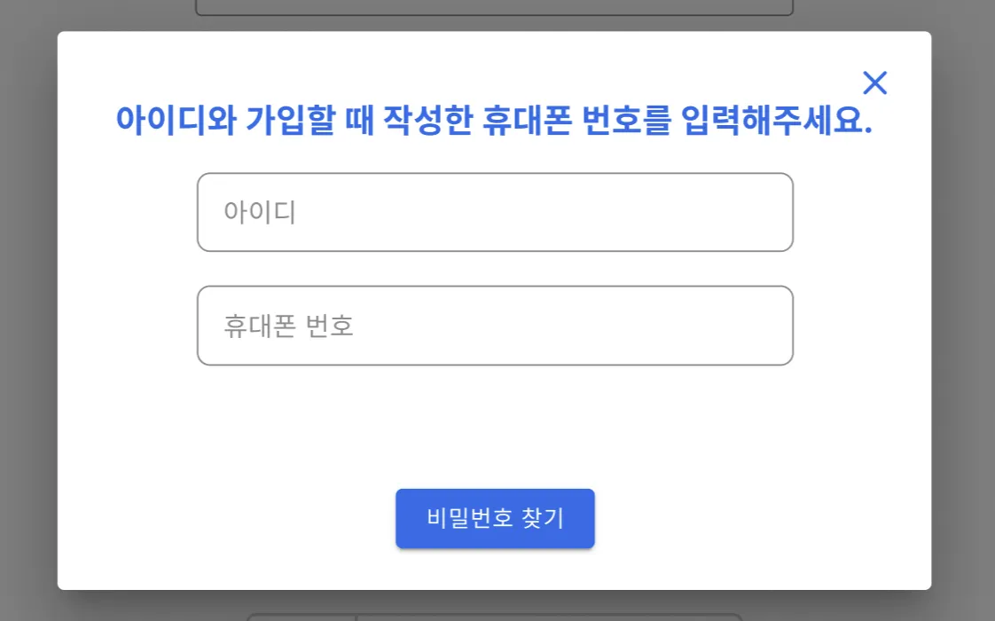 비밀번호 찾기를 클릭하면 팝업창이 노출됩니다.